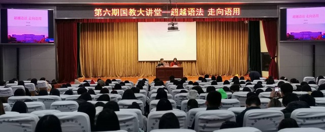 王江汉以“超越语法,走向语用”为主题,从中国近代、现代以及当代高等教育发展史为基本线索,将中国高等教育发展的历史和现状以及外语工作者的使命变迁融入其中,阐明了在高等教育中英语专业学习的重点。王江汉指出,英语学习不应只停留在英语语言知识层面,更应注重以交际为目标的学习,突破语言形式,追求语言语用功能,他的生动讲述和幽默话语赢得现场学生的阵阵掌声。