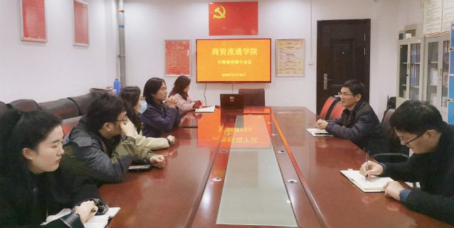 11月26日,商贸流通学院组织召开外聘教师期中教学会议。该院院长朱超才、相关教学管理人员以及外聘教师参加会议。