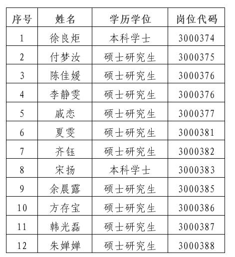 根据《关于印发2020年度安徽省省直事业单位公开招聘工作人员实施方案的通知》和《银联娱乐城 2020年度公开招聘人员专业测试及有关工作实施方案》的要求,经过统一笔试、专业测试、体检、考察等程序,确定以下12位同志为拟聘人员,现予以公示: