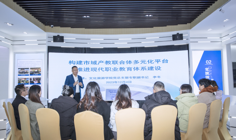 12月4日,文化旅游学院组织开展“构建市域产教联合体多元化平台推进现代职业教育体系建设”专题党课报告,报告由文化旅游学院党总支部专职副书记李冬主讲,文化旅游学院学生党支部全体党员参加报告会。